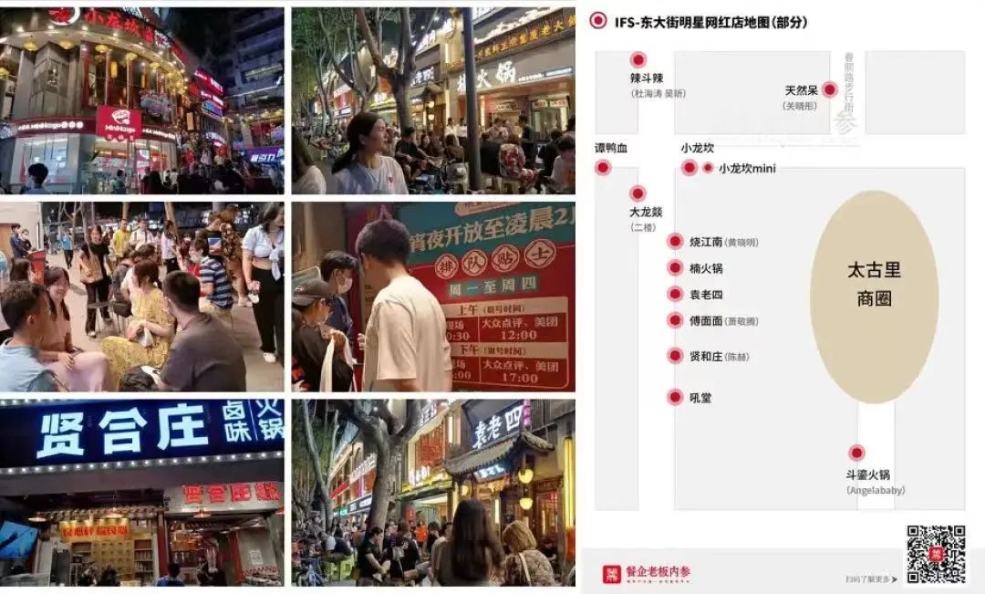 當(dāng)時(shí),這條街上不僅有黃曉明的“燒江南”,還有陳赫的賢合莊、蕭敬騰的傅面面、孫藝洲的灶門(mén)坎,以及不遠(yuǎn)處Angelababy的斗鎏火鍋、關(guān)曉彤的天然呆奶茶、杜海濤吳昕的辣斗辣、鄧倫的火社等一眾明星餐廳……此外,還有譚鴨血、楠火鍋、吼堂、小龍坎等本土知名網(wǎng)紅店“前后夾擊”。