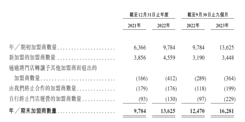 圖:蜜雪冰城加盟門店情況,來(lái)源:招股書