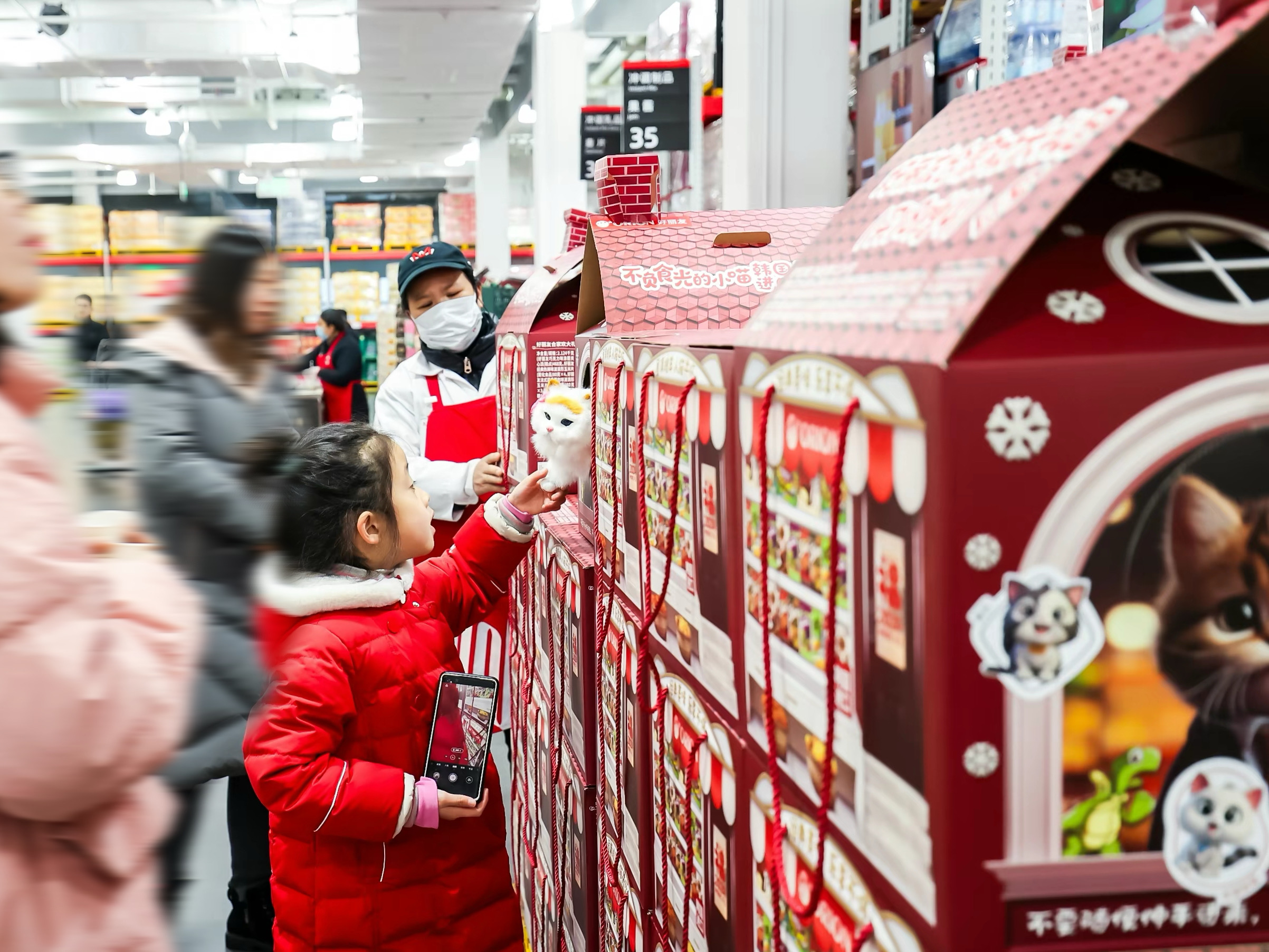 工作人員現(xiàn)場展示,該款零食禮包內(nèi)含豐富,是宅家追劇、招待親朋、作為節(jié)日伴手禮的上佳選擇;外包裝還能變成“貓窩”給“鏟屎官”們的愛寵一個(gè)玩樂空間,吸引不少會員駐足關(guān)注。