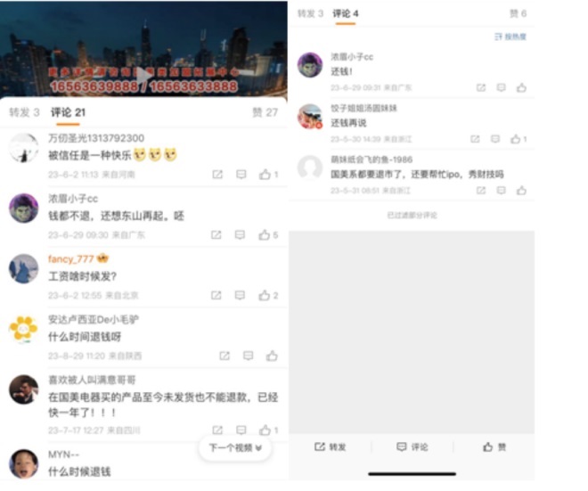 社交媒體搜索發(fā)現(xiàn),該項目收效甚微,倒是不斷有員工、消費者倒苦水:“工資什么時候發(fā)?”“在國美電器買的陳品至今未發(fā)貨也不能退款,已經(jīng)快一年了!”