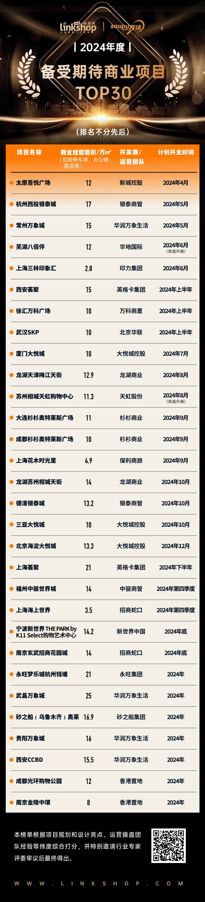 2024年度備受期待商業(yè)項目TOP30