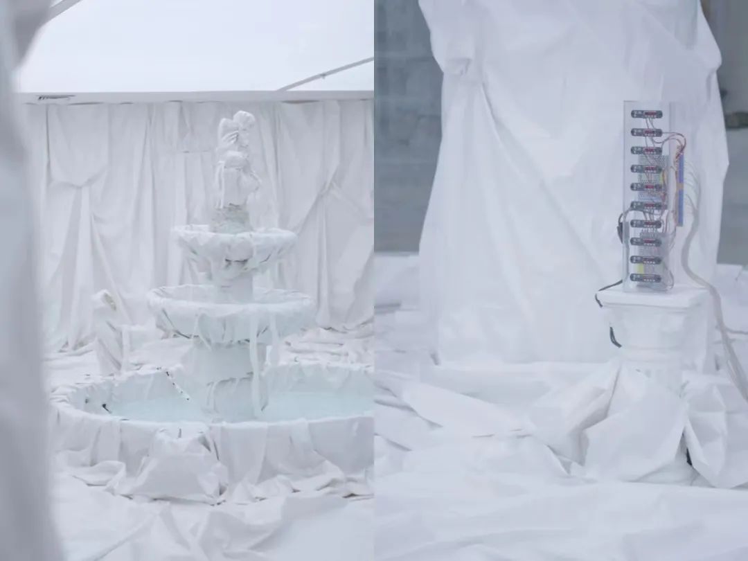 純白的一方空間里,肅穆的古羅馬石柱靜靜佇立,許愿池里的水聲潺潺,讓過(guò)往的行人情不自禁駐足欣賞……