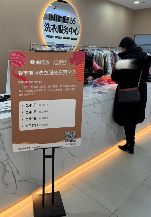 銀泰百貨洗衣服務(wù)中心的春節(jié)假期安排提醒