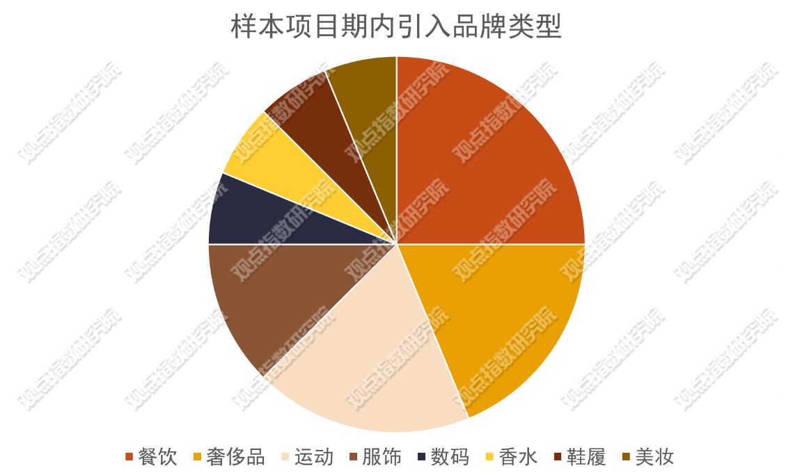 期內(nèi),觀點(diǎn)指數(shù)觀察下的樣本項(xiàng)目品牌引入數(shù)量較為穩(wěn)定,相比上個(gè)報(bào)告期有輕微增長。雖然引入的品牌數(shù)量在年內(nèi)并不算多,但類型較為豐富。