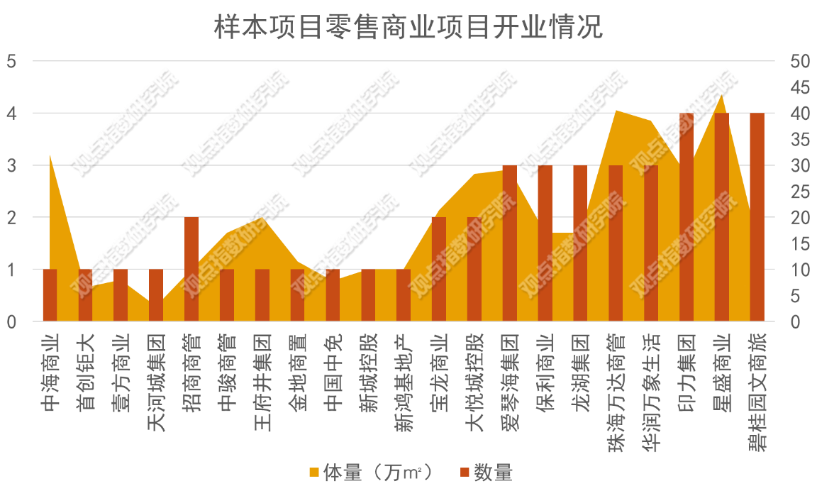 據(jù)觀點(diǎn)指數(shù)統(tǒng)計(jì),樣本企業(yè)共有21家有新項(xiàng)目開出,期內(nèi)也成為年內(nèi)最多企業(yè)開業(yè)的節(jié)點(diǎn),共計(jì)開出43個(gè)零售商業(yè)項(xiàng)目,體量超過410萬平方米,占期內(nèi)全國新增開業(yè)項(xiàng)目的半壁江山。