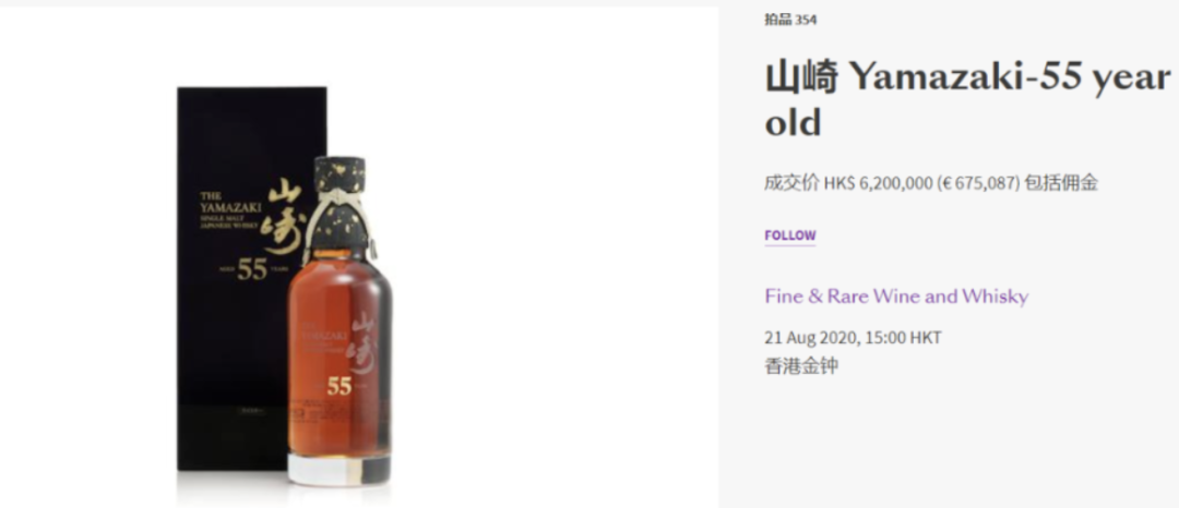 日威也因此變成具有禮品流通和金融屬性的藏品。比如2020年,Bonhams的香港拍賣會上,一瓶山崎55年以港幣620萬元(約合人民幣555萬元)成交,創(chuàng)單瓶日本威士忌的歷史新高。