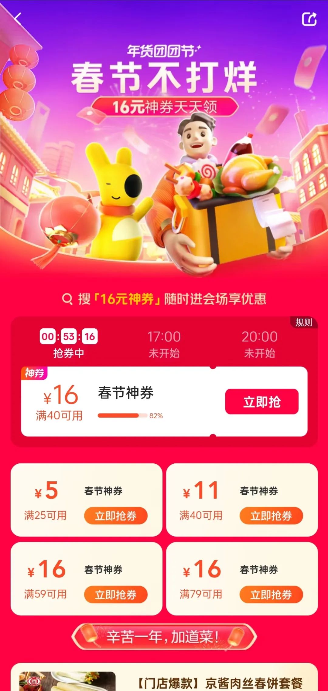 美團外賣春節(jié)活動 圖源:美團App
