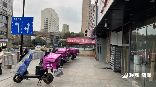 在臨近杭州新塘地鐵站的一家站點(diǎn),筆者蹲守近兩個(gè)小時(shí),由于天氣異常寒冷,大多數(shù)騎手都“貓”在山姆前置倉(cāng)或者周邊小飯館內(nèi)等待“派單”,不少騎手的電瓶車也整齊地?吭诼愤。