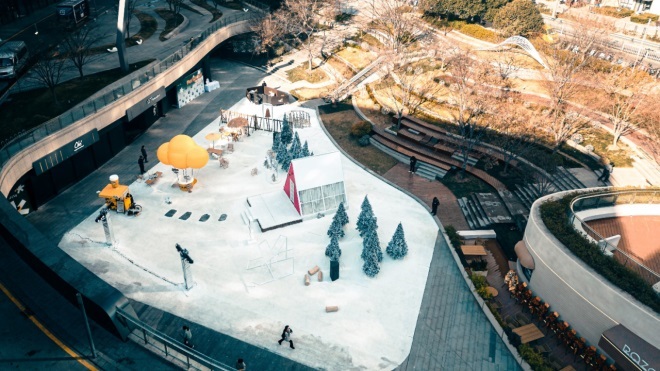 南面近3000平大草坪,種上了40多棵美國紅楓,將會舉辦咖啡節(jié)、納涼音樂會、精致露營等活動,特意設(shè)計(jì)的小亭子則用來和咖啡、茶飲等時(shí)尚品牌合作快閃活動。到時(shí)候,潮人們席地而坐,喝啤酒,吃小龍蝦,擼串,沉浸式享受松弛又精致的都會生活……