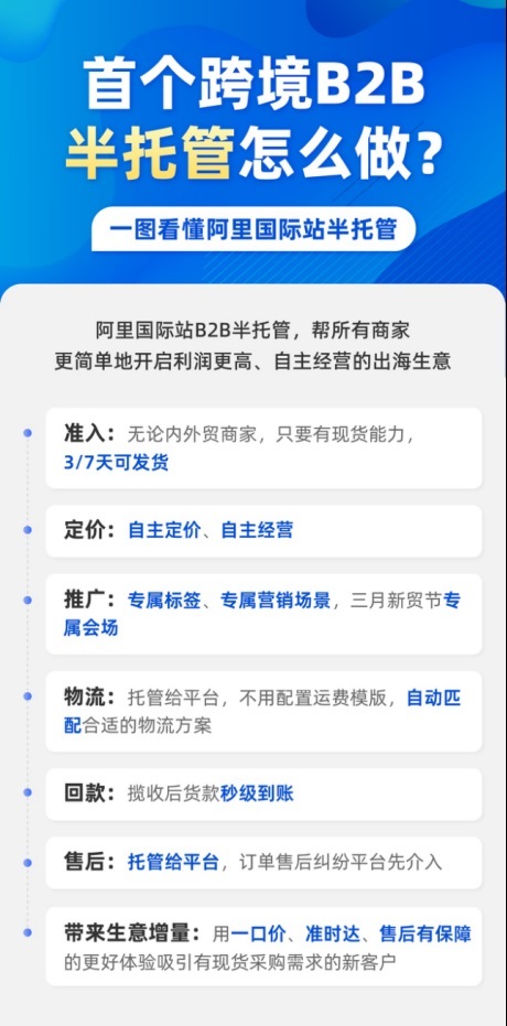 日前阿里國際站推出首個跨境B2B半托管,開啟招商20多天來,大批商家涌入。