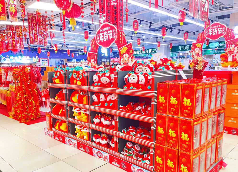 除此之外,永輝超市還在門店內(nèi)上線了多款年花及春節(jié)飾品,包括春節(jié)福字、春聯(lián)、紅包、龍年玩偶等等,滿足消費(fèi)者全方位的新年消費(fèi)需求。