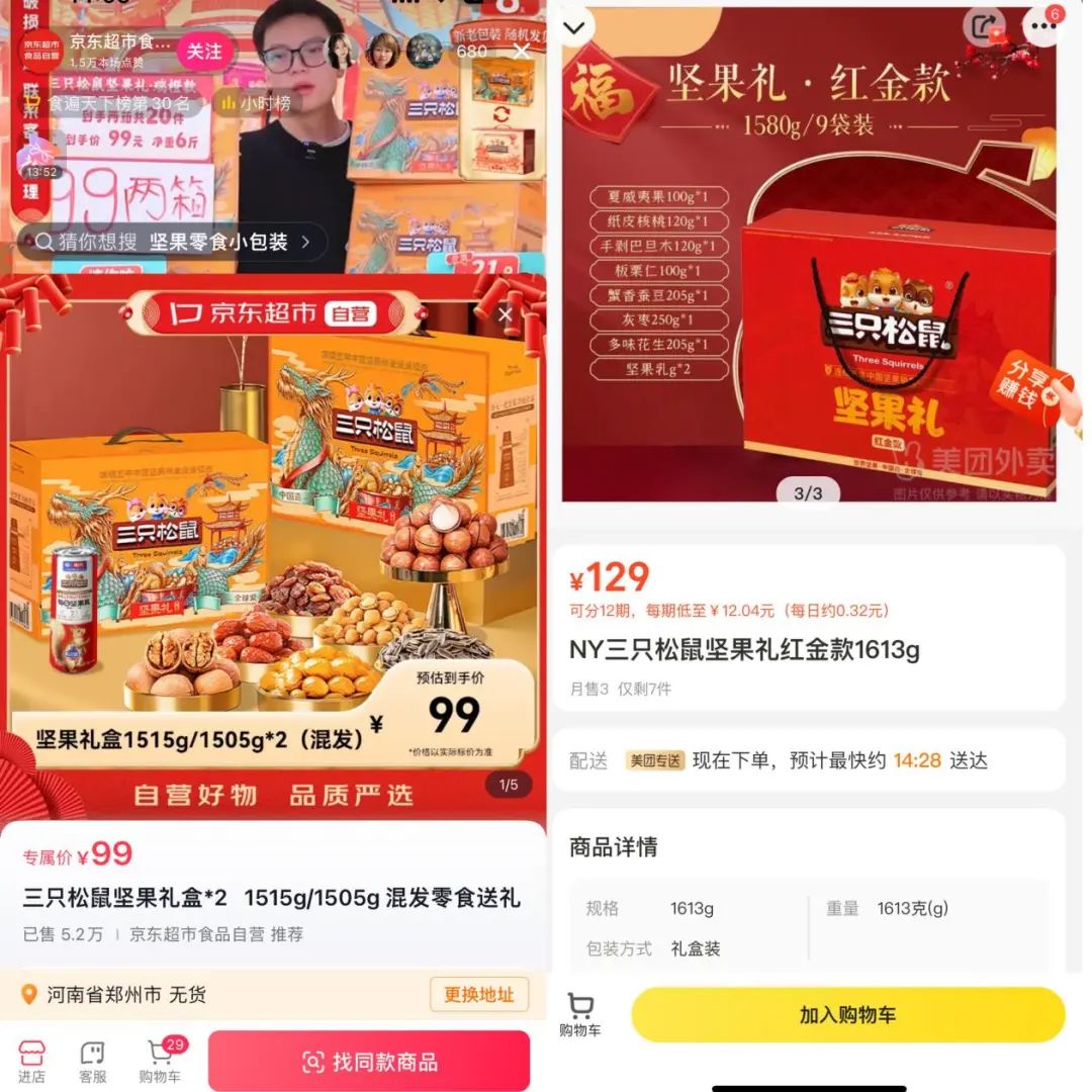 消費(fèi)者只需要稍微地比價(jià),就會發(fā)現(xiàn),幾乎所有線下渠道都無法與線上產(chǎn)品對抗。這也從側(cè)面解釋了為何三只松鼠創(chuàng)始人,在線上年貨節(jié)開始前,暫停了線下年貨業(yè)務(wù)。