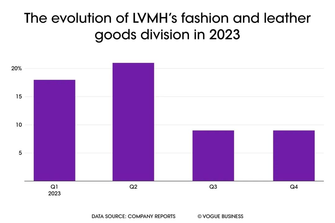上周,這個全球最大奢侈品集團(tuán)發(fā)布財報,顯示營收同比增長9%至862億歐元,符合市場預(yù)期。但兩頭最大的“現(xiàn)金奶牛”業(yè)務(wù)下滑明顯:時裝皮具部門收入僅增長4%至112.6億歐元,相比2022年明顯放緩;利潤豐厚的香水美妝業(yè)務(wù)增速從雙位數(shù)回落至個位數(shù)——兩個都曾是中國消費(fèi)者最愛光顧的品類。