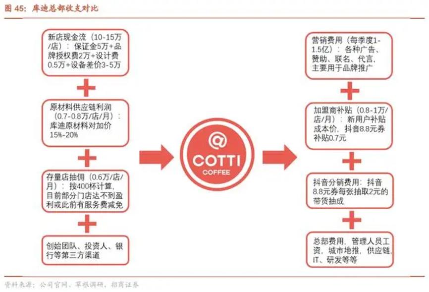 除了存量店抽傭外,庫迪的收入來源還包括新店現(xiàn)金流、原材料供應(yīng)鏈利潤以及外部投資。