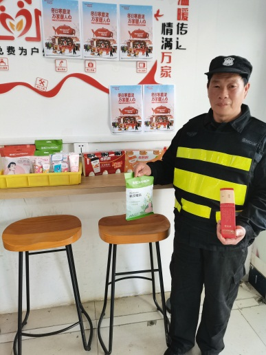 1月15日開始,杭州、寧波、蘇州、無錫活動(dòng)門店入口處,陸續(xù)擺放了奶茶、小面包、護(hù)手霜等暖冬關(guān)愛物資,送給來往奔波的戶外工作者。“現(xiàn)在大家都習(xí)慣網(wǎng)購(gòu)了,購(gòu)物平臺(tái)也越來越多,我們忙的時(shí)候,從天不亮一直干到天黑,都顧不上吃飯,你們送的溫暖小禮包有面包、奶茶真暖心! 一個(gè)外賣小哥邊說著邊為門店志愿者豎起了大拇指。