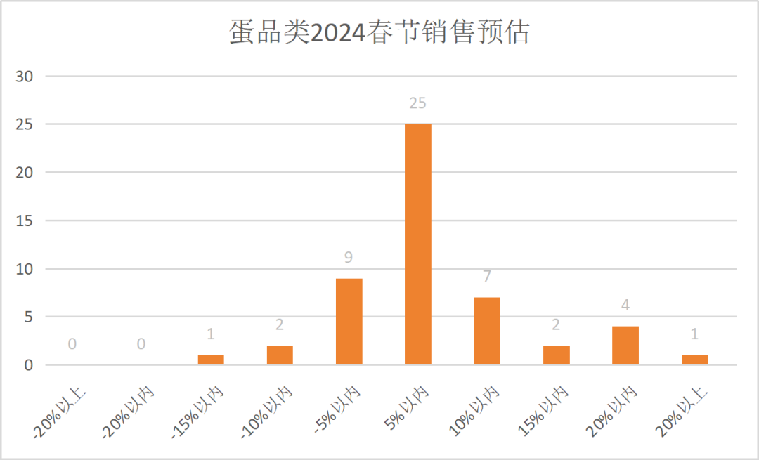 蛋品類商品是春節(jié)年貨備餐主要食材,用量較平時(shí)明顯增長(zhǎng),預(yù)判銷售穩(wěn)定增長(zhǎng)。