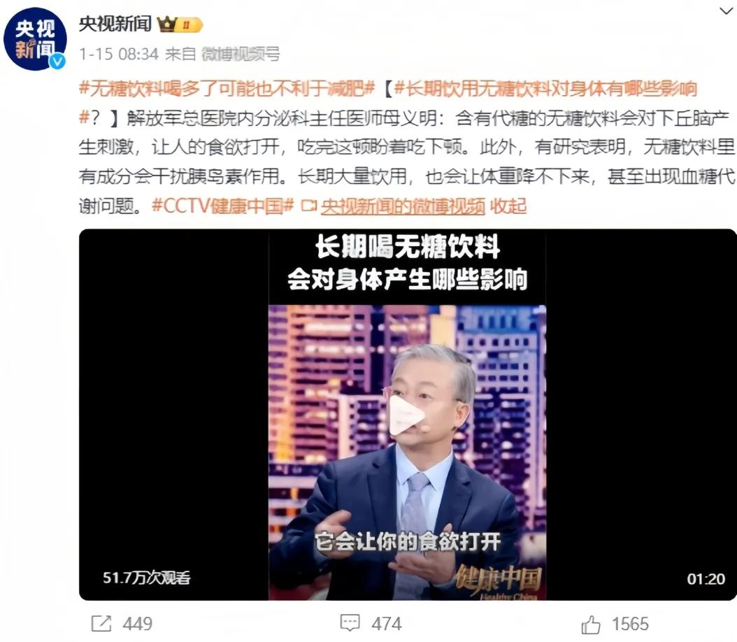比如央視某節(jié)目在前幾天就提到:無糖飲料喝多了,可能也不利于減肥,反而讓人吃得更多。