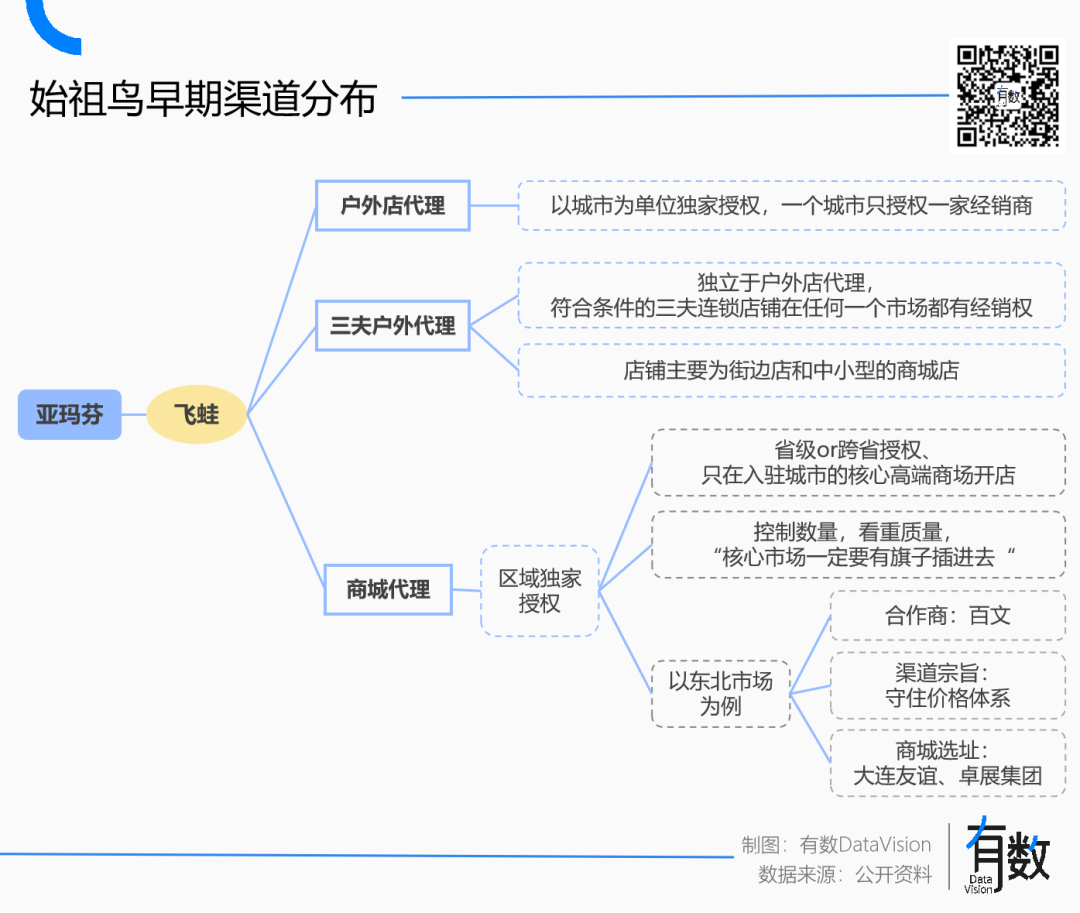 例如,如今貴為商圈頂流、比鄰愛馬仕的始祖鳥,在亞瑪芬時(shí)期卻沒能在中國開出一家直營門店,它選了飛蛙作為中國總代理商,并分包給多家經(jīng)銷商來完成最終銷售。
