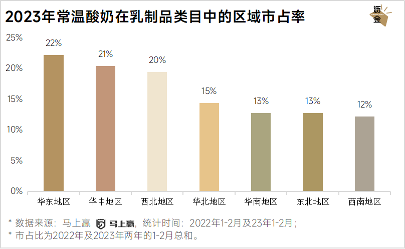 2023年常溫酸奶在乳制品類目中的區(qū)域市占率