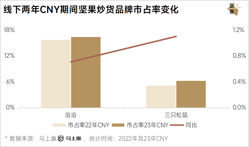 2022、2023年線下CNY期間堅果炒貨品牌市占率變化