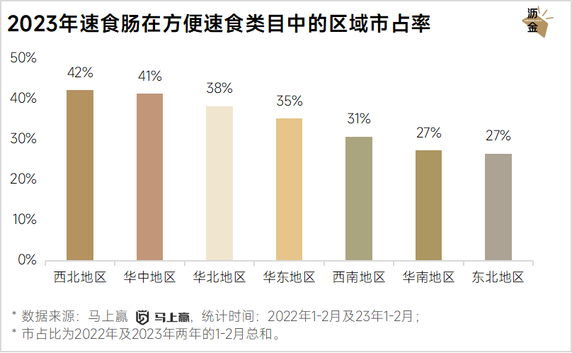 2023年速食腸在方便速食類目中的區(qū)域市占率