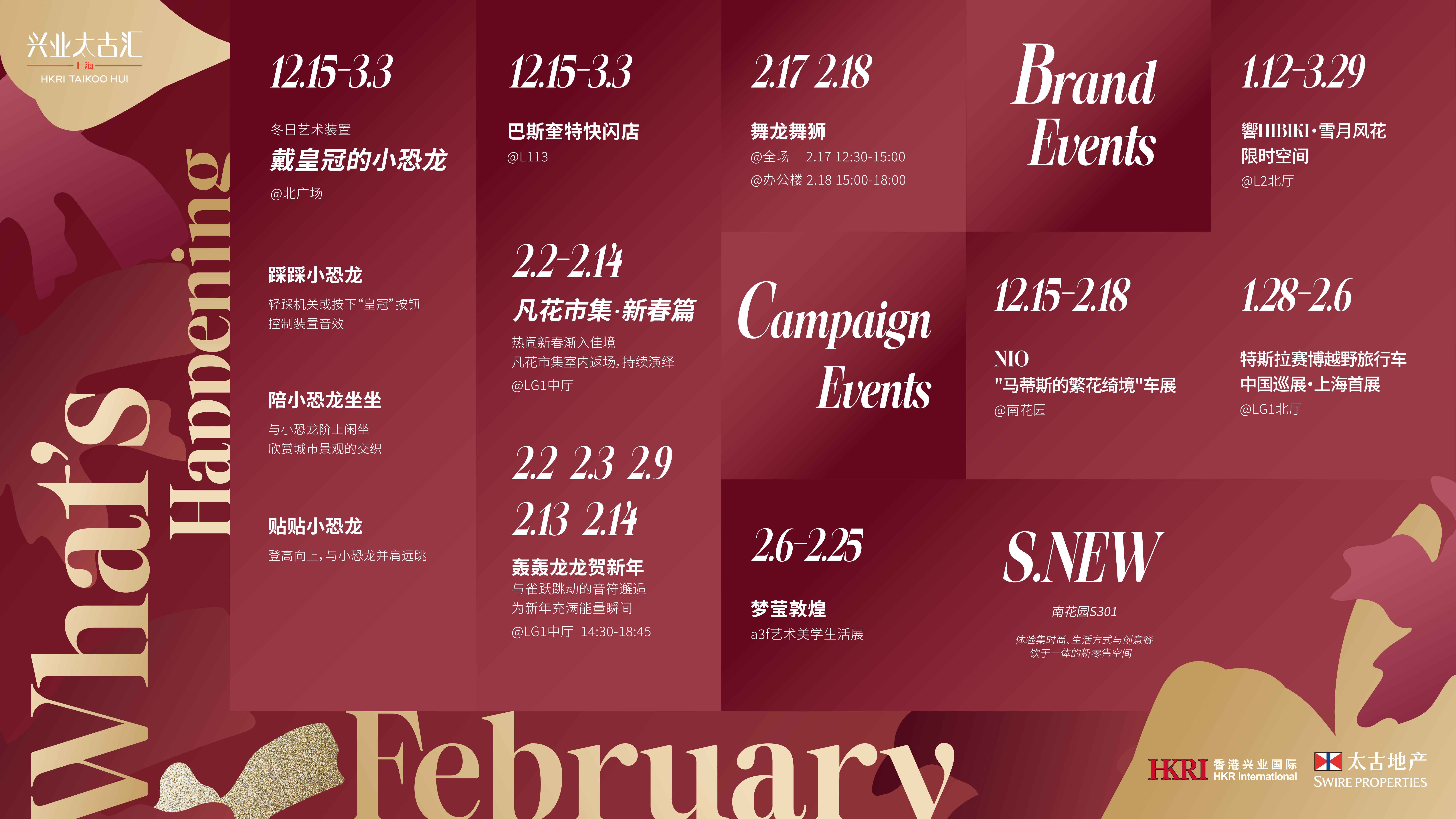 禮遇派送不止如此,興業(yè)太古匯 “轟轟龍龍獻瑞禮”新春促銷攜豐厚新年福利為假日消費加碼,F金禮券、滿額贈禮、積分翻倍等一系列促銷活動不間斷上演,消費者最高可享價值約3000元的禮品,為新春假期加滿活力。