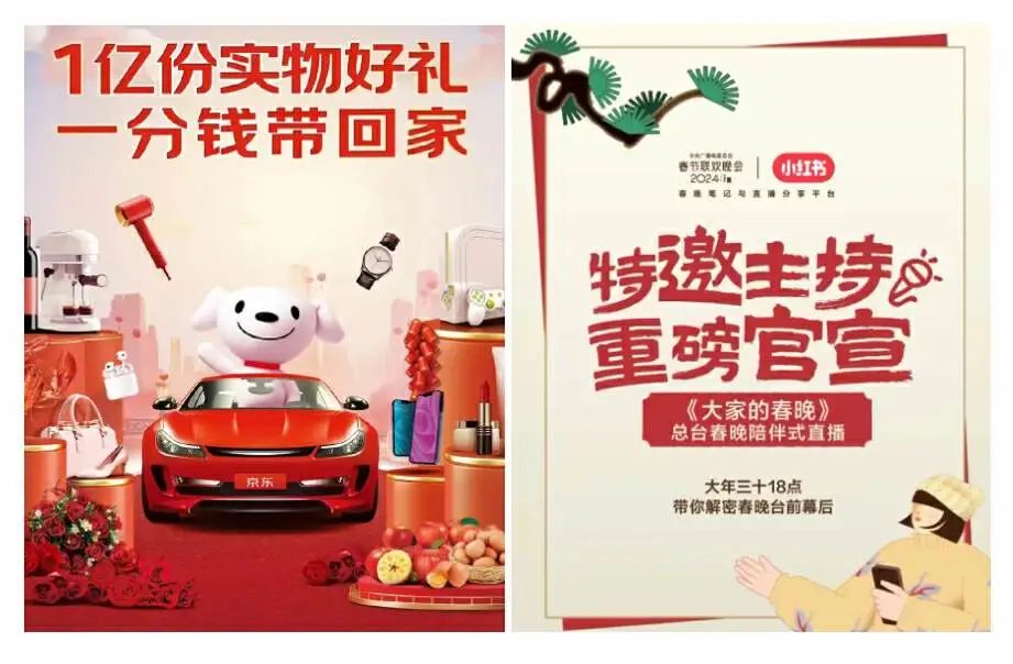 圖/京東(左)、小紅書(右)春晚宣傳海報,來源/京東、小紅書,鏡觀臺截圖