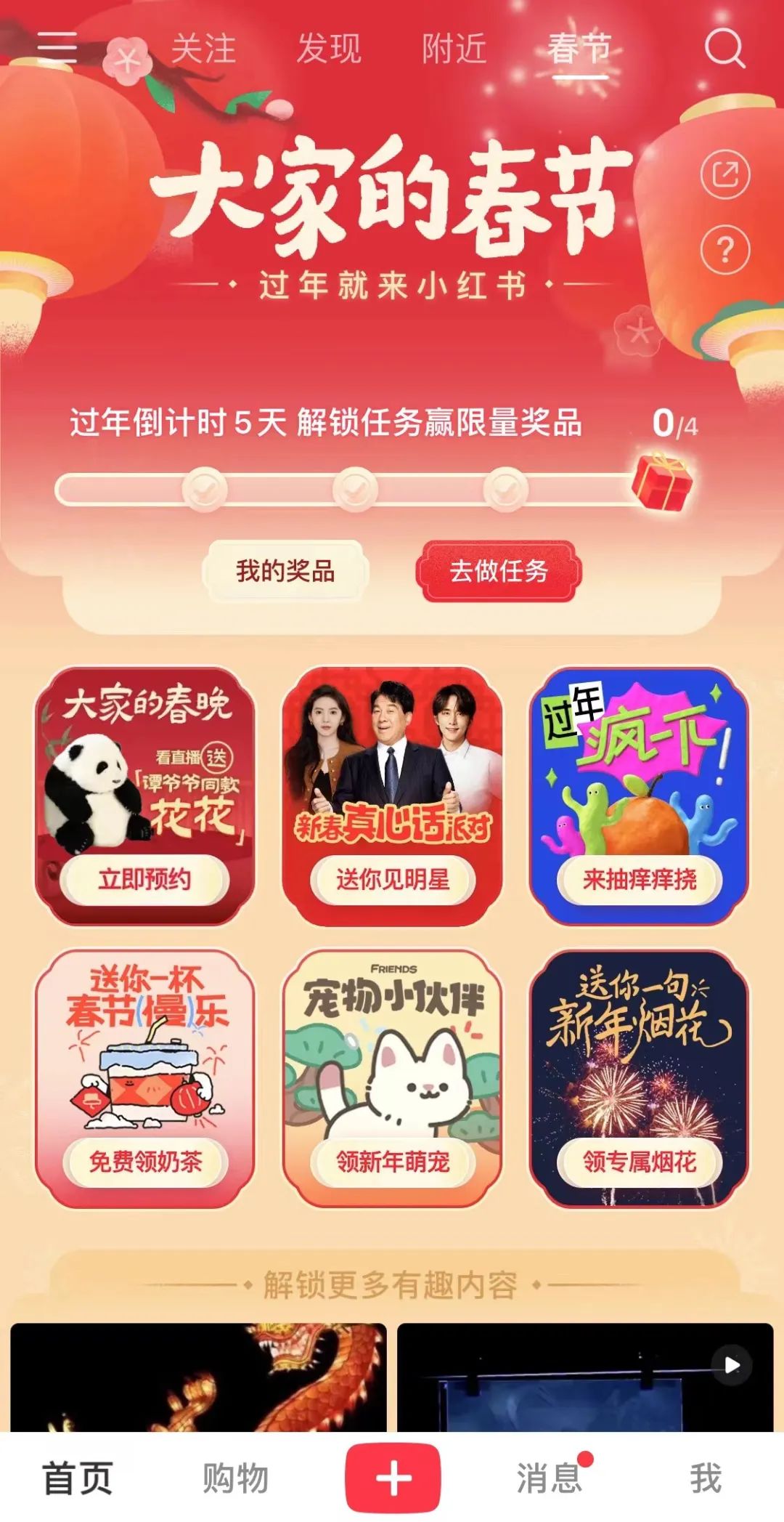 1. 小紅書更新APP,在頂部欄新增「附近」和「春節(jié)」兩個一級入口。