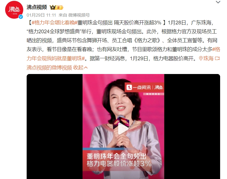 這段時間,喜劇電影《年會不能!芬鹆瞬簧佟按蚬と恕钡墓缠Q。而就在近日,格力電器(000651.SZ)在“萬眾矚目”之下舉辦了自己的年會——“2024全球夢想盛典”,并在網(wǎng)絡(luò)上引發(fā)了熱議。