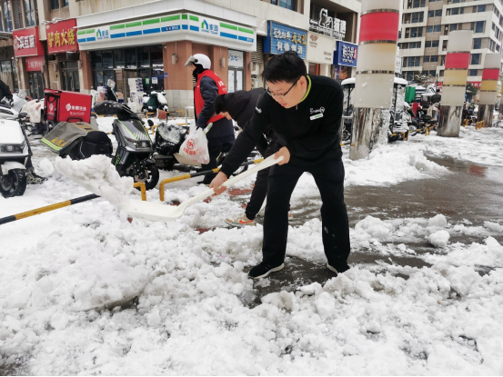 永輝超市四里河店、淮南萬(wàn)達(dá)店等門店店長(zhǎng)秉持著“以客戶為中心”的服務(wù)理念,第一時(shí)間組織團(tuán)隊(duì)對(duì)超市門前、附近街道的積雪進(jìn)行清除,方便顧客和車輛通行。