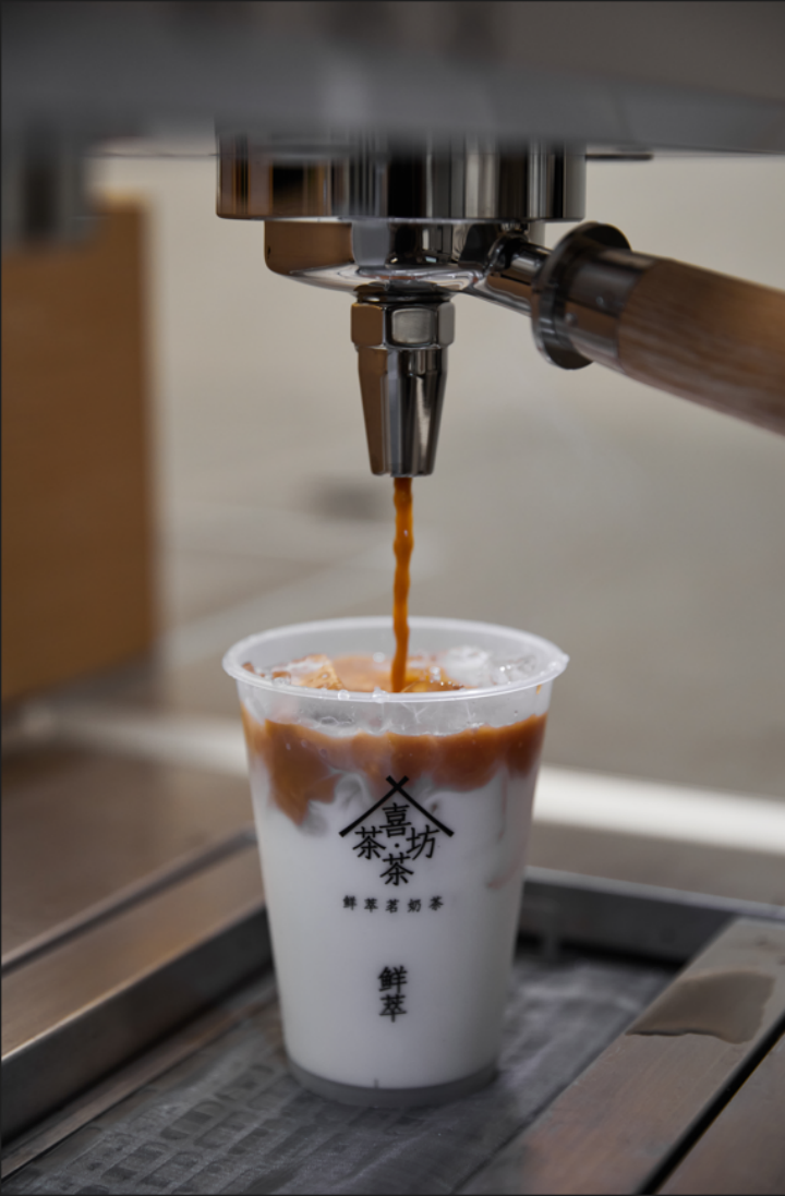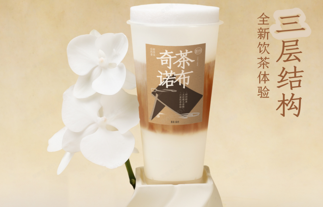 四大系列中主推的鮮萃·茶布奇諾擁有全新的產(chǎn)品形態(tài),也是喜茶·茶坊2024年最新推出的產(chǎn)品類型,目前已經(jīng)獲得國(guó)際權(quán)威咨詢機(jī)構(gòu)弗若斯特沙利文授予的首創(chuàng)認(rèn)證。茶布奇諾系列新品以精品咖啡中的“卡布奇諾”為靈感,結(jié)合喜茶·茶坊鮮萃精品茗茶的品類特色進(jìn)行研發(fā)。在茶布奇諾制作過(guò)程中,需要將鮮萃茶湯加入已經(jīng)打出奶沫的奶底中,使得在液體密度差作用下,奶沫自然升起,形成從上到下依次由奶沫、鮮萃茶湯、奶底組成的特色分層結(jié)構(gòu)。