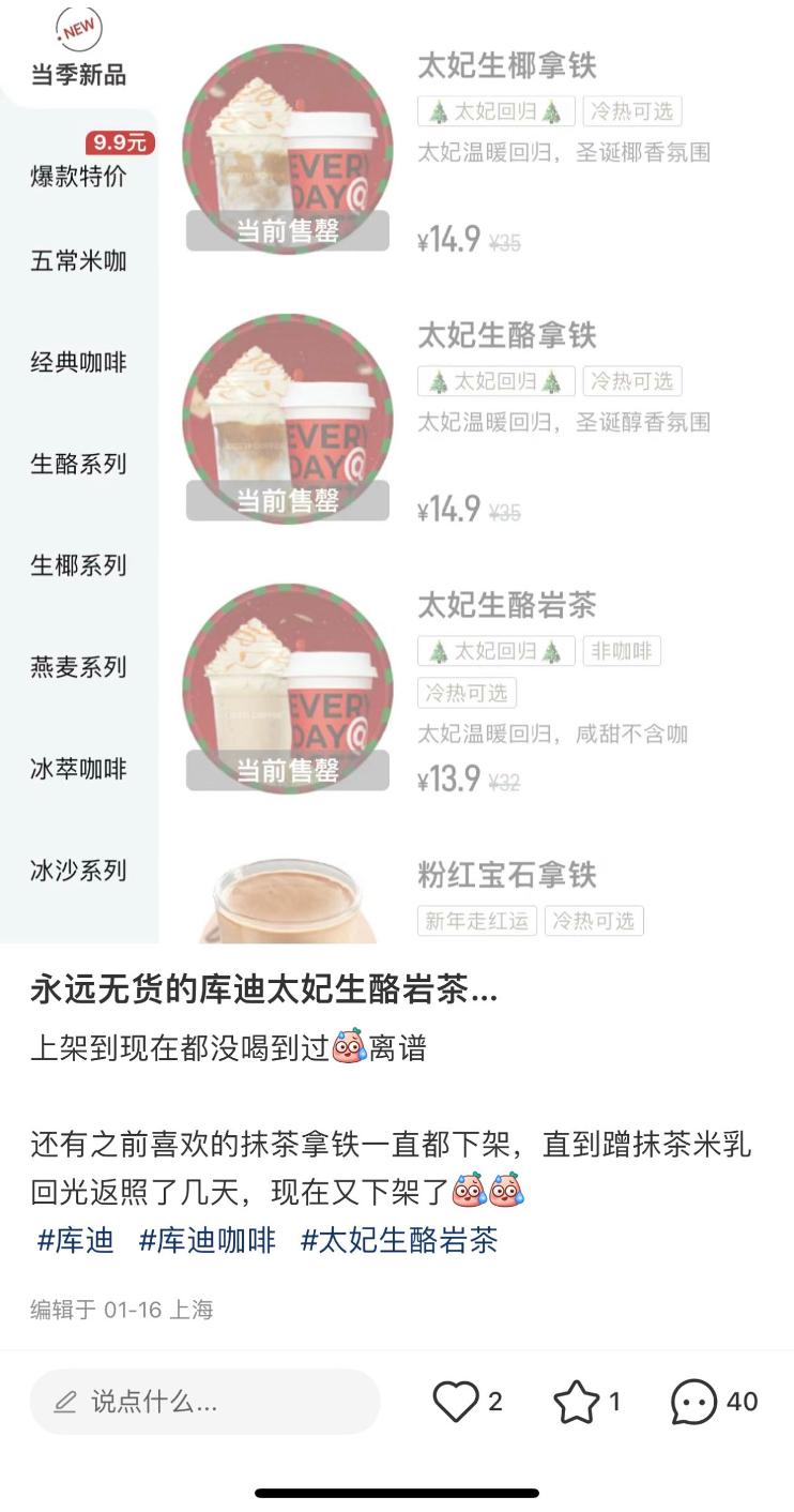 不過,售罄并不代表生意太好,也可能是因?yàn)槁?lián)營(yíng)商訂不到貨而沒法做產(chǎn)品。就像有大量聯(lián)營(yíng)商吐槽過"后臺(tái)訂原料得靠搶,手速慢了就會(huì)訂不上"。同時(shí)有聯(lián)營(yíng)商表示,庫(kù)迪派來的所謂咖啡師根本不會(huì)做咖啡;將門店托管給運(yùn)營(yíng)團(tuán)隊(duì)后,竟然兩個(gè)月都不能開出門店......