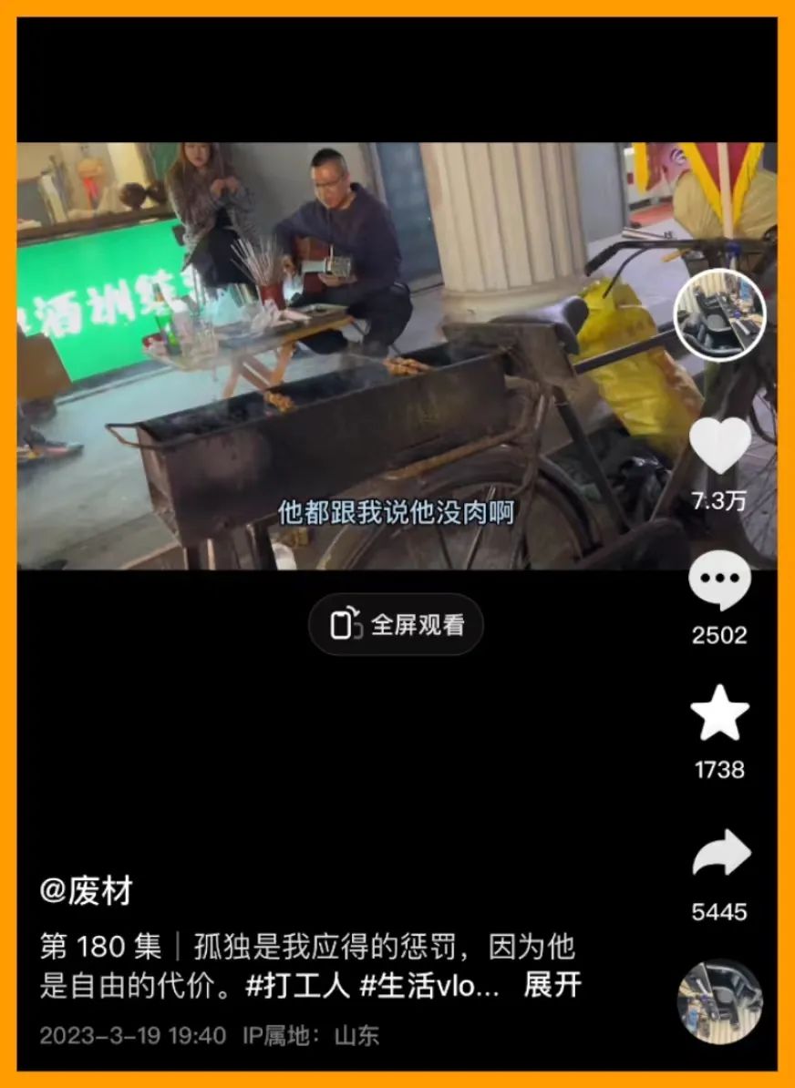 從業(yè)多年,周凱也經(jīng)歷過低谷期,2020年,他曾因投資賠了一百六十萬(wàn),但專心做燒烤這件事陪他走出了低谷,也讓他明白,活著就得有一股氣撐著!霸匐y還得自己消化,要帶給別人快樂,有事情可做,也就這么熬過來了,人一定要有向上的一股勁,好運(yùn)氣才會(huì)來找你!