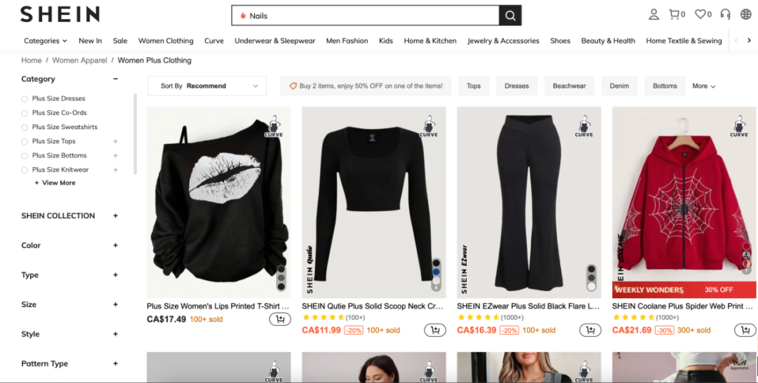 SHEIN官網(wǎng)首頁(yè)仍突出服裝類(lèi)目