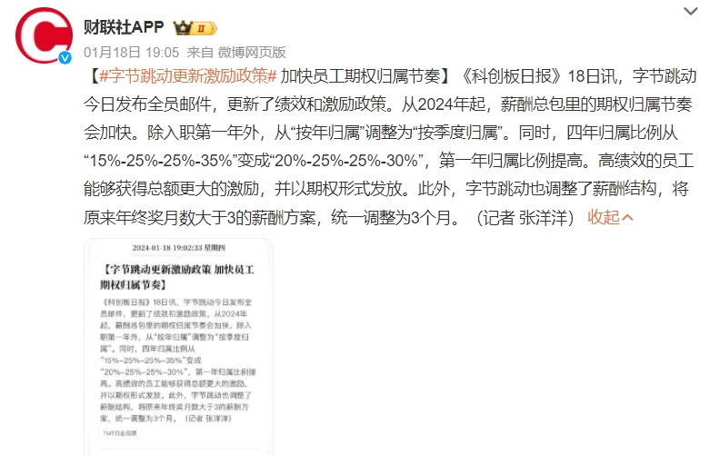 近期字節(jié)跳動在更新的績效和激勵政策中,保持薪酬年包總金額不變,將產(chǎn)品線薪酬由18薪調(diào)整為15薪,年終獎固定為3個月工資 期權(quán)的做法,就引發(fā)了圈內(nèi)的熱議。