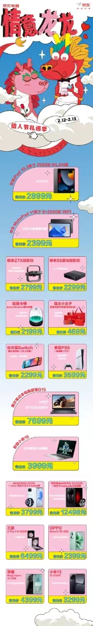 農(nóng)歷龍年正式到來(lái),看春晚、吃年夜飯、串門(mén)拜年,年復(fù)一年雖然做著同樣的習(xí)俗,但仍讓無(wú)數(shù)返鄉(xiāng)的游子心中填滿(mǎn)家的溫暖。而今年春節(jié)恰逢情人節(jié),年味和浪漫“撞個(gè)滿(mǎn)懷”。除了熙熙攘攘的人流讓街道洋溢著濃濃的年味,還讓空氣中平添了幾分浪漫的“味道”。很多情侶和愛(ài)人都愿意在這個(gè)時(shí)候互表愛(ài)意,而選擇一份合適的情人節(jié)禮物就成為向愛(ài)人進(jìn)行告白的最佳助攻方式。即日起,京東五星電器特別推出2.14情人節(jié)禮遇季,發(fā)布“實(shí)用型”熱門(mén)禮品清單,爆款價(jià)格直降,助力浪漫告白。