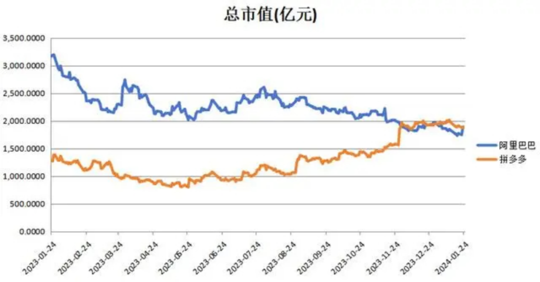 其次是財(cái)報(bào)。2023年底,“拼多多市值超越阿里和京東”的消息攪動(dòng)了傳統(tǒng)電商一池春水。雖然話題很有熱度,業(yè)內(nèi)外紛紛向拼多多發(fā)來(lái)“賀電”,但是回到三家傳統(tǒng)電商其時(shí)的財(cái)報(bào)上,他們或許并不想“如此招搖”。