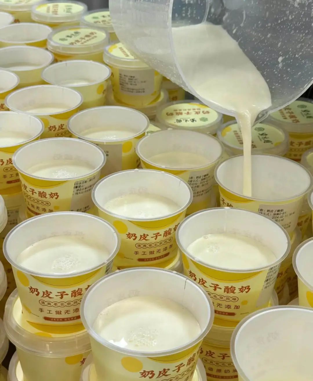 如今不一樣了,懂了大媽好的年輕人也開始走進紫光園,并且把這款誕生年齡不明,突然在去年年底火起來的奶皮子酸奶稱為【北京新特產(chǎn)】,過年回家?guī)灼咳茨愕男⑿。“吃進嘴里像是化開像慕斯,奶味特別濃, 吊打市面上所有酸奶。”小紅書網(wǎng)友形容。