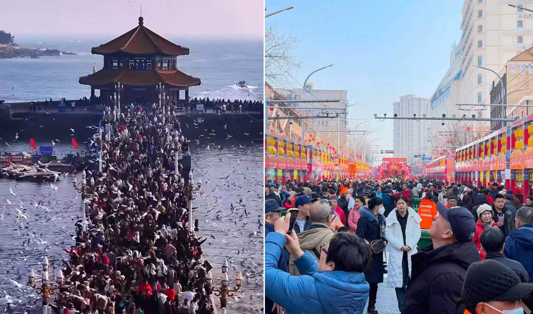 過去一年的兩大旅游城市頂流淄博和哈爾濱,春節(jié)期間同樣被擠滿。