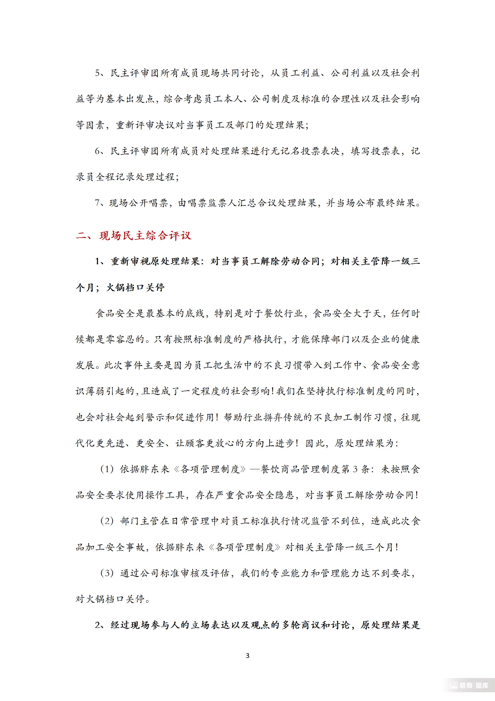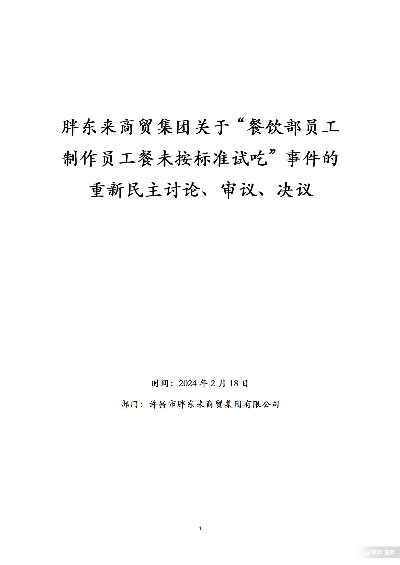 附:胖東來商貿(mào)集團(tuán)關(guān)于“餐飲部員工制作員工餐未按標(biāo)準(zhǔn)試吃”事件的重新民主討論、審議、決議