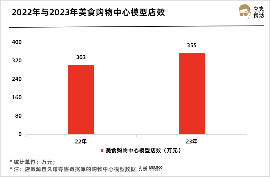 不過從整體營業(yè)額來看,2023年我國購物中心內(nèi)餐飲門店的店效達(dá)到355萬元,同比上漲17.1%。