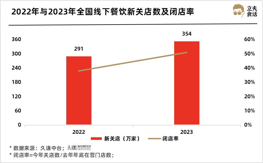 2023年餐飲新開店298萬家,關(guān)店354萬家