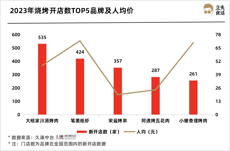 2023年燒烤開店數(shù)TOP5品牌及人均價