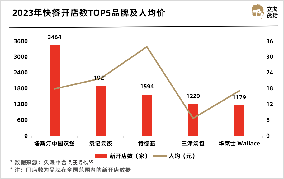 2023年快餐開店數(shù)TOP5品牌及人均價