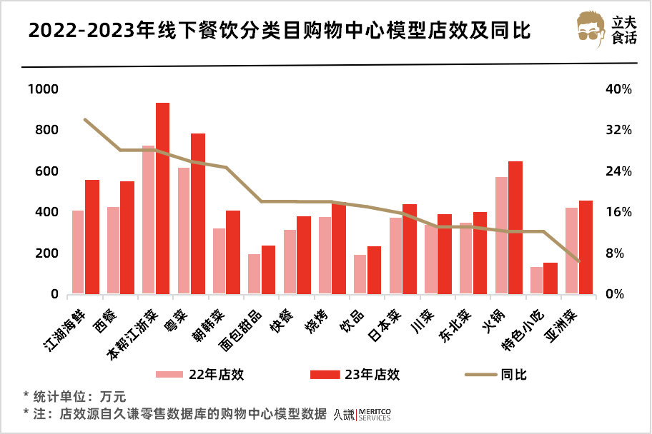 22-23年線下餐飲分類目購物中心模型店效及同比