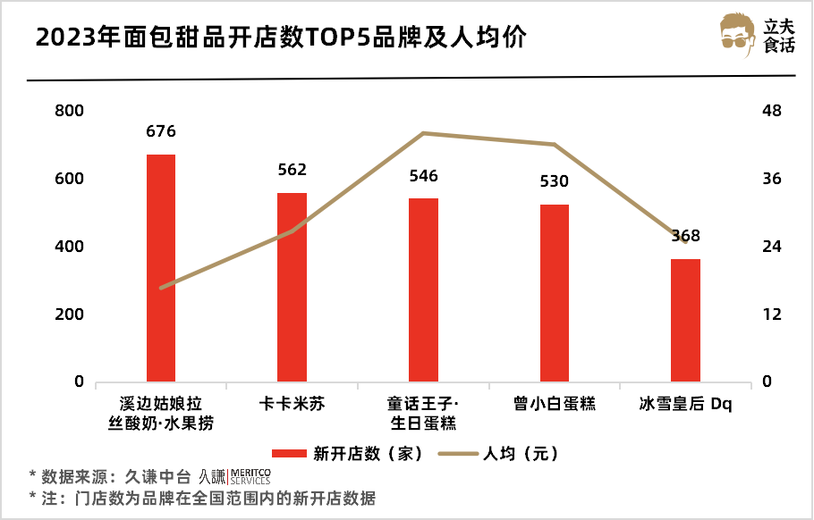 2023年面包甜品開店數(shù)TOP5品牌及人均價