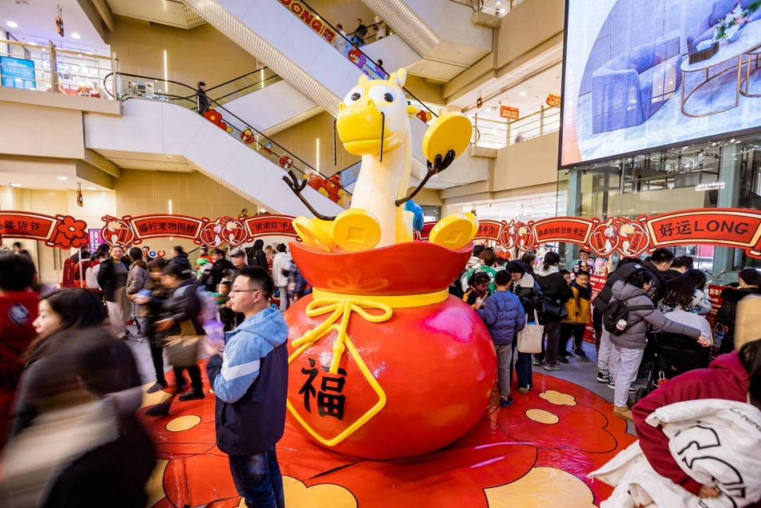 各百貨商場、購物中心、奧萊、免稅店紛紛圍繞春節(jié)主題,營造節(jié)日氛圍、強化節(jié)日體驗,促進節(jié)日消費,廣泛開展購物季、春節(jié)送福、龍年快閃店、主題巡游、直播帶貨等形式豐富的線上線下活動。
