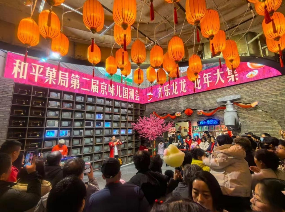 其中,百貨大樓和平菓局開辦“齊樂龍龍,龍年大集”京味兒國潮會,讓消費者在傳統(tǒng)文化與現(xiàn)代潮流融合的新國潮場景中感受北京年味兒;