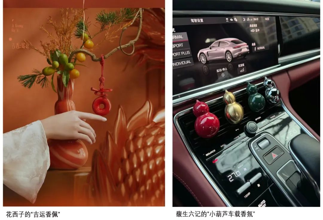 例如:花西子以平安扣和“吉”字為靈感,推出新年新品“吉運(yùn)香佩”,新品兼具配飾和賦香雙重屬性;而「觀夏」和「馥生六記」今年陸續(xù)推出的“祥云車載香氛”和“小葫蘆車載香氛”也被稱為是“懂商業(yè)的組合”。