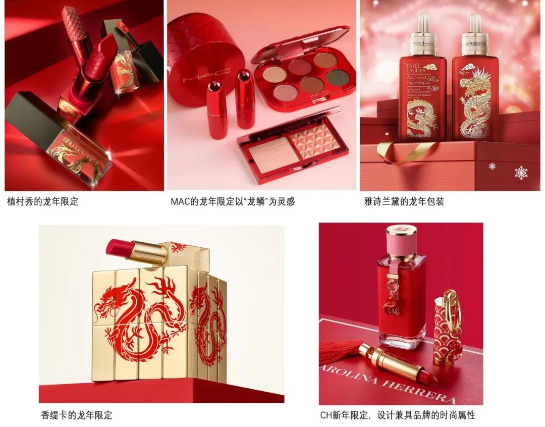 這樣做對(duì)于銷售的促進(jìn)作用是明顯的,且大部限定系列也產(chǎn)生了積極的溢價(jià)作用。到了今年,“生肖限定”仍然熱度不減,仍然是美妝品牌最常使用的營(yíng)銷手段——通過龍年套裝的組合銷售、龍年顏色妝容的開發(fā),達(dá)到一個(gè)宣傳和促銷的目的。